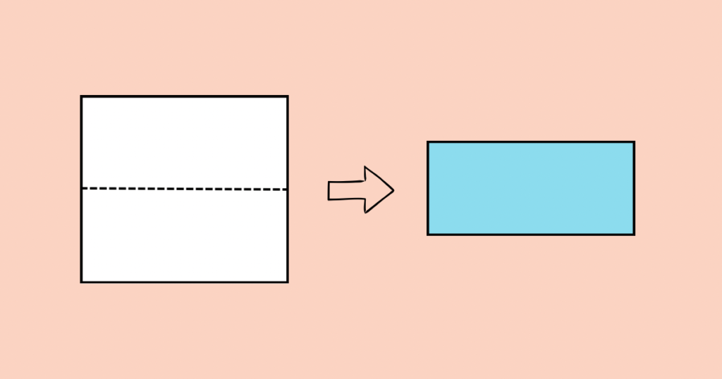 まずは、正方形の折り紙を半分に折ってみることからやってみましょう。保育者が「ぺったん」などわかりやすい言葉で伝えていくことで、子どもたちにも伝わりやすくなります。